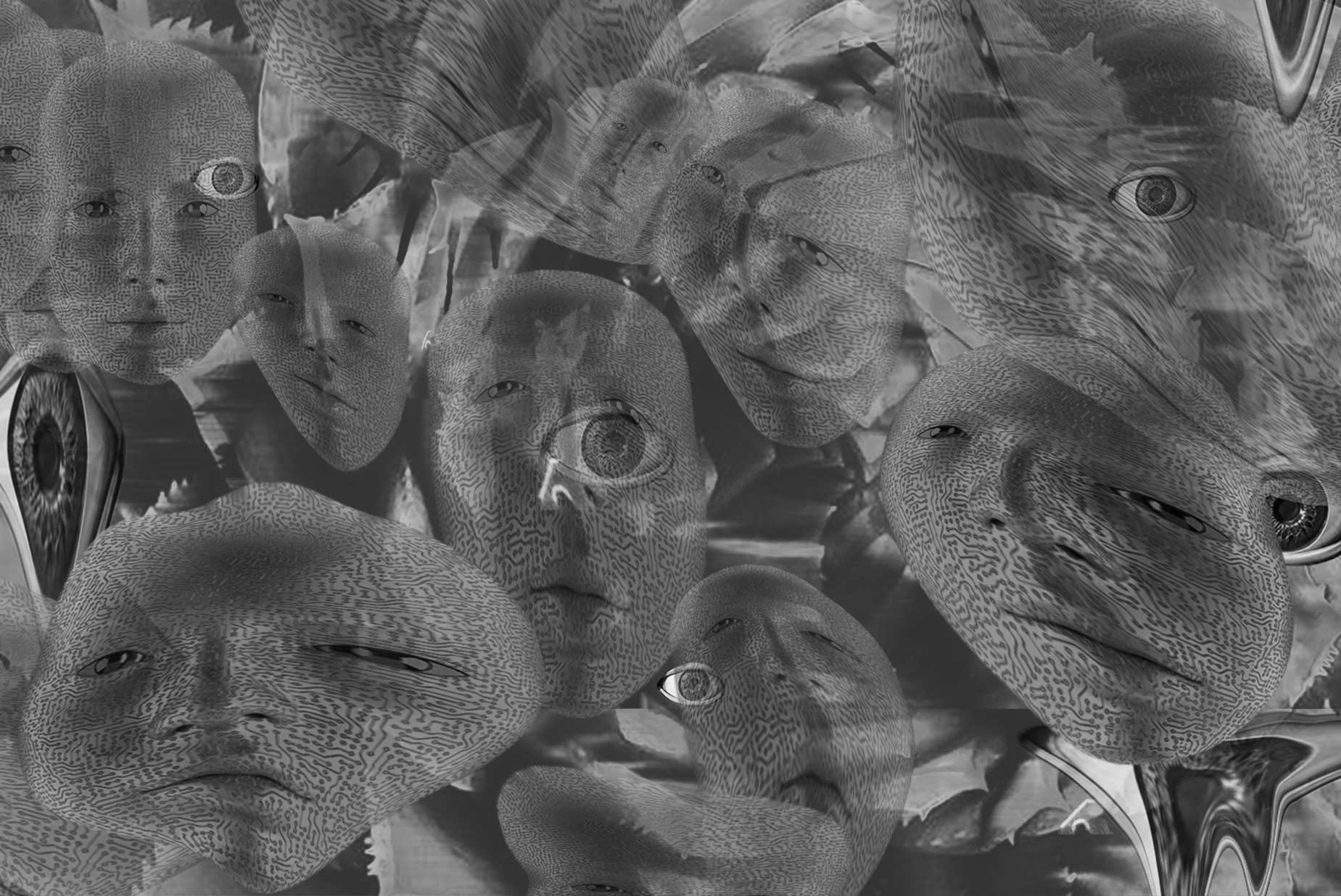 The background shows a distortion of faces with fauna to further dive into the narrative, adorned by a set of blooming flowers to signify that despite it all, there is still hope in finding ourselves in the end.